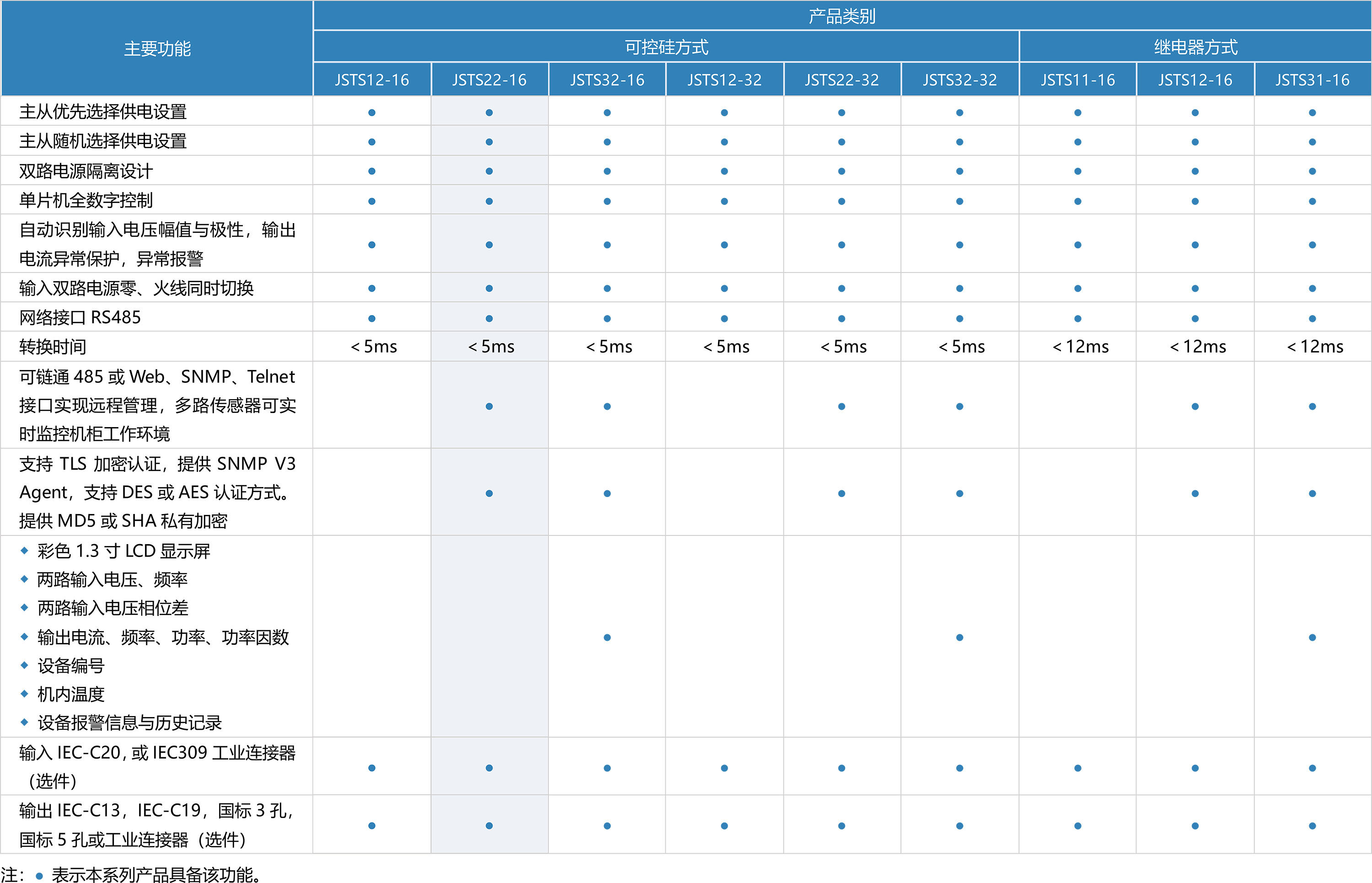 産品主要(yào)功能(néng)一(yī)覽表