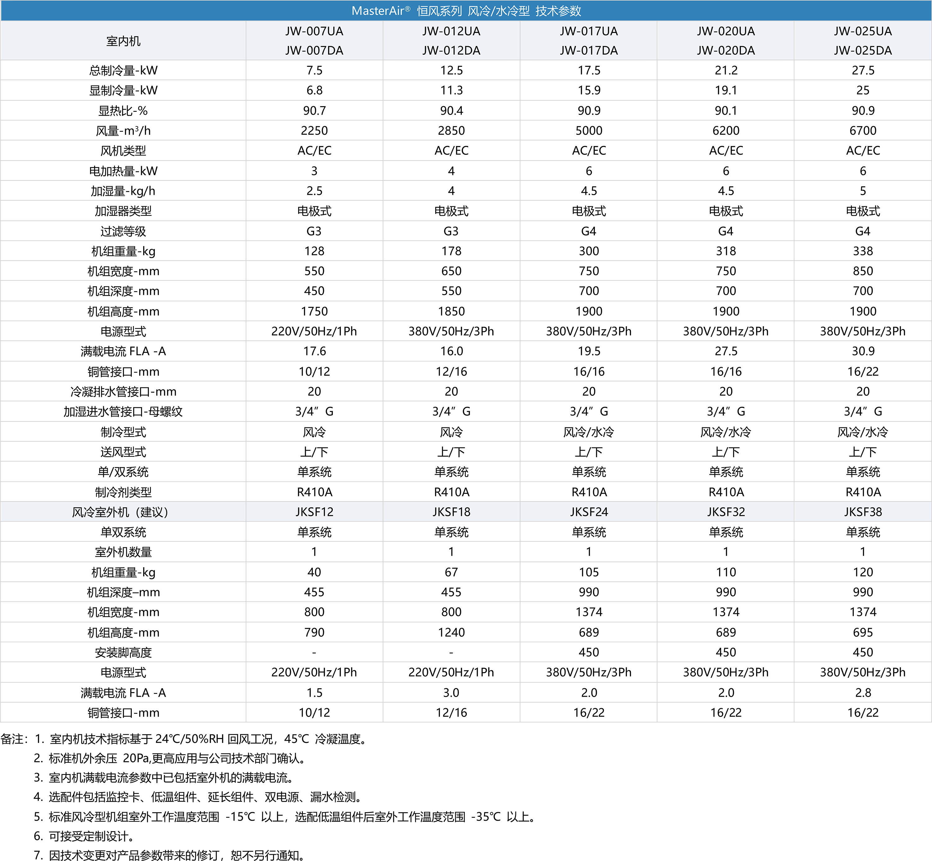 7.5KW: JW-007UAY(上(shàng)送風 ≈(fēng))/ JW-007DAY(下₩(xià)送風(fēng))+ JKSF12AN(恒溫恒₩σ濕)