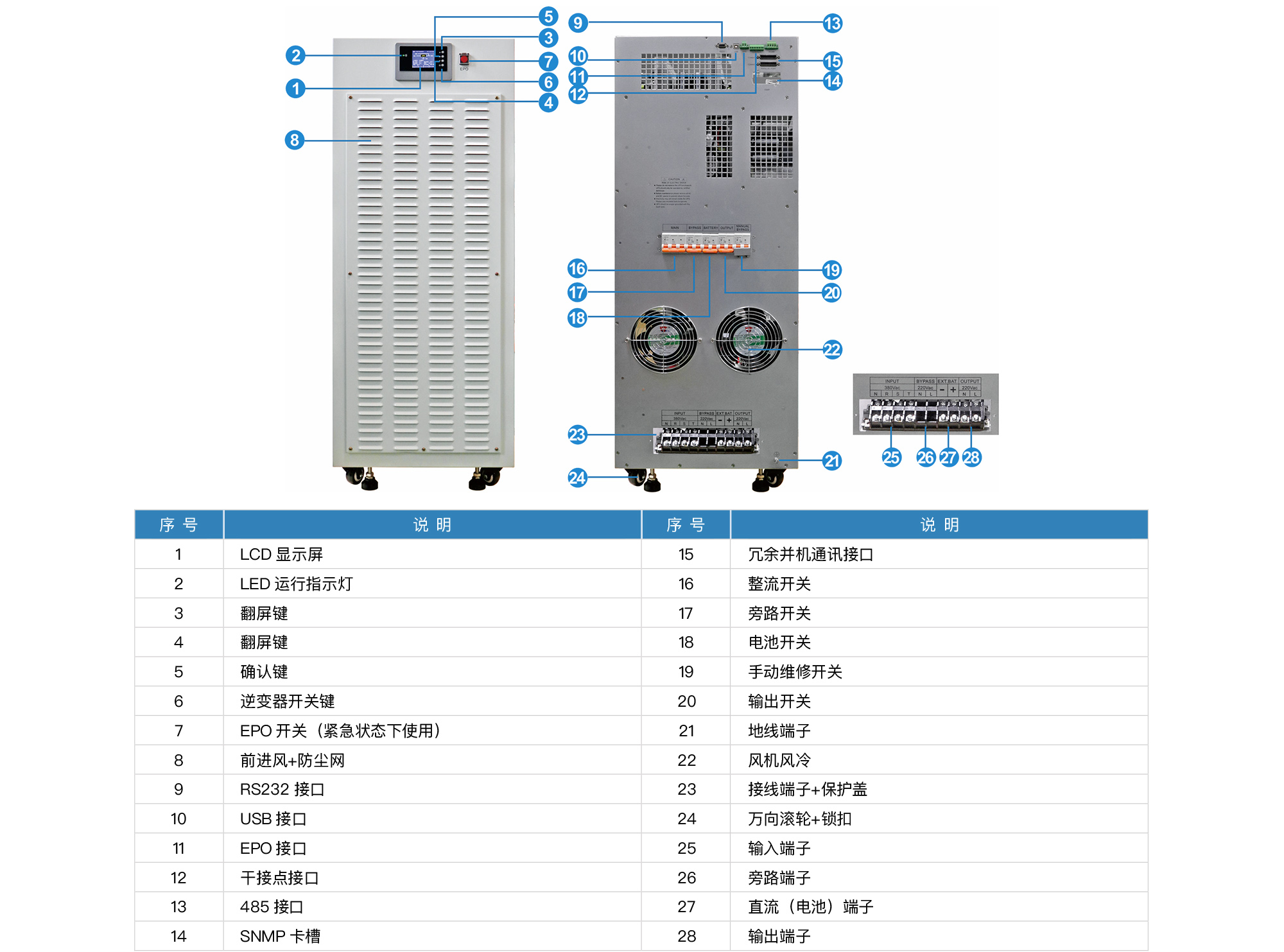 雙輸入方式,可(kě)控矽整流,IGBT逆↕δ♦§變,輸入/輸出隔離(lí)變壓器(qì)≈≤,旁路(lù)隔離(lí)變壓器(qì),IP42,三∏↔防