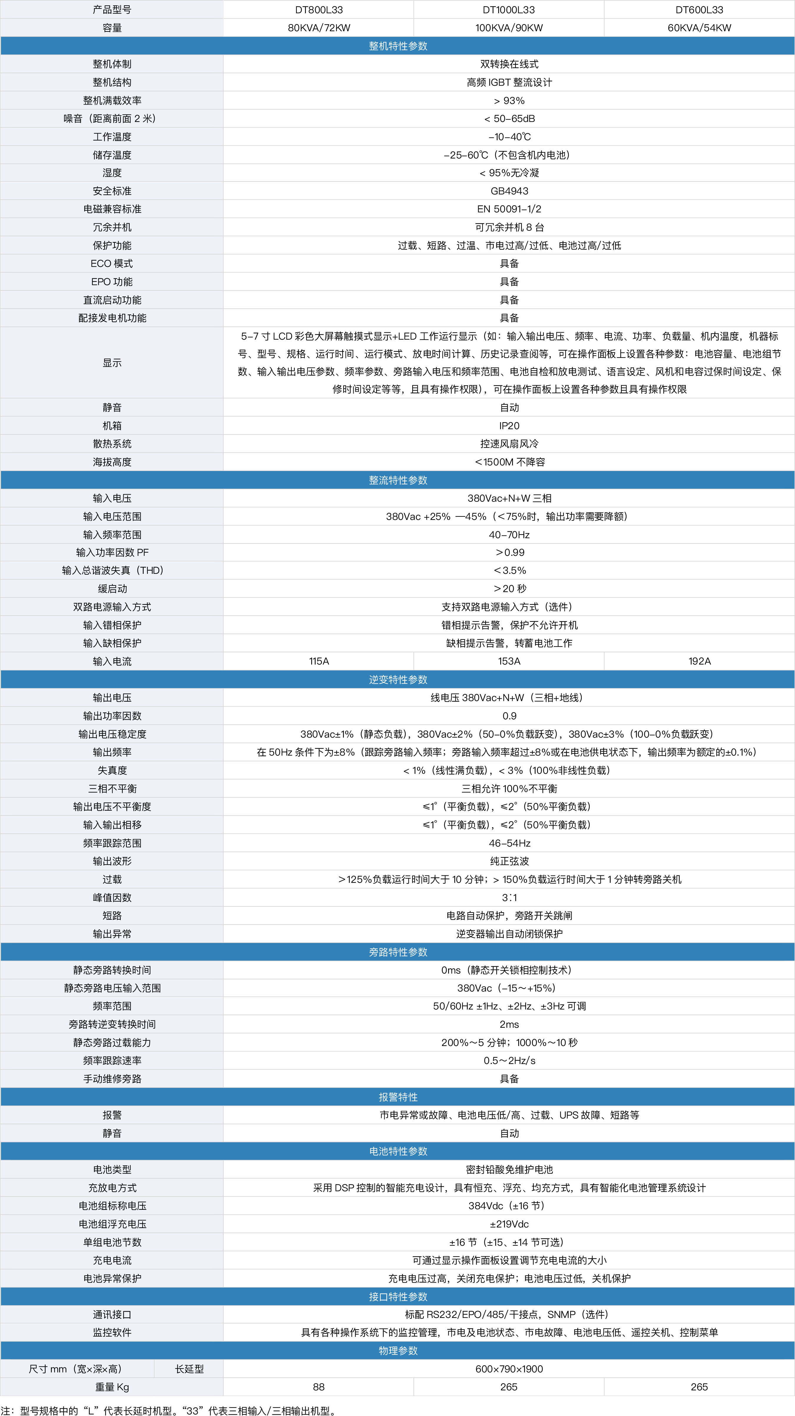 DT 系列産品是(shì)一(yī)款雙&nb₩¥"sp;DSP、全數(shù)字化(huà)控制(zhì)技(jì)術(←₩"shù)下(xià)的(de)雙轉換在線式三相(xiàn≥©g) UPS 系統。DT 系列産品具有(yǒu)強大(dà)的(de)并聯冗餘的♦&(de)特性,且輸入諧波失真度 THDI≤3.5%,輸入功率因數(shù) ≥0.99,整機(jī)效率 AC~AC 達 93%,輸出功率因數(shù) 0.9,可(kě)以說(shuō) DT 系列産品是(shì)一(yī)款高(gāo)可(kě)靠、高(gāo)效能(€β₹♦néng)的(de)綠(lǜ)色環保電(diàn)源。其具有(yǒu←α₹)強大(dà)的(de)遠(yuǎn)程監控和(hé)人(rén)機(jī)介∞≥面互動性,十分(fēn)适合中大(dà)型數(shù)據中心、精密設備、電∑₹→♠(diàn)信、醫(yī)療行(xíng δ✘)業(yè)的(de)使用(yòng)。