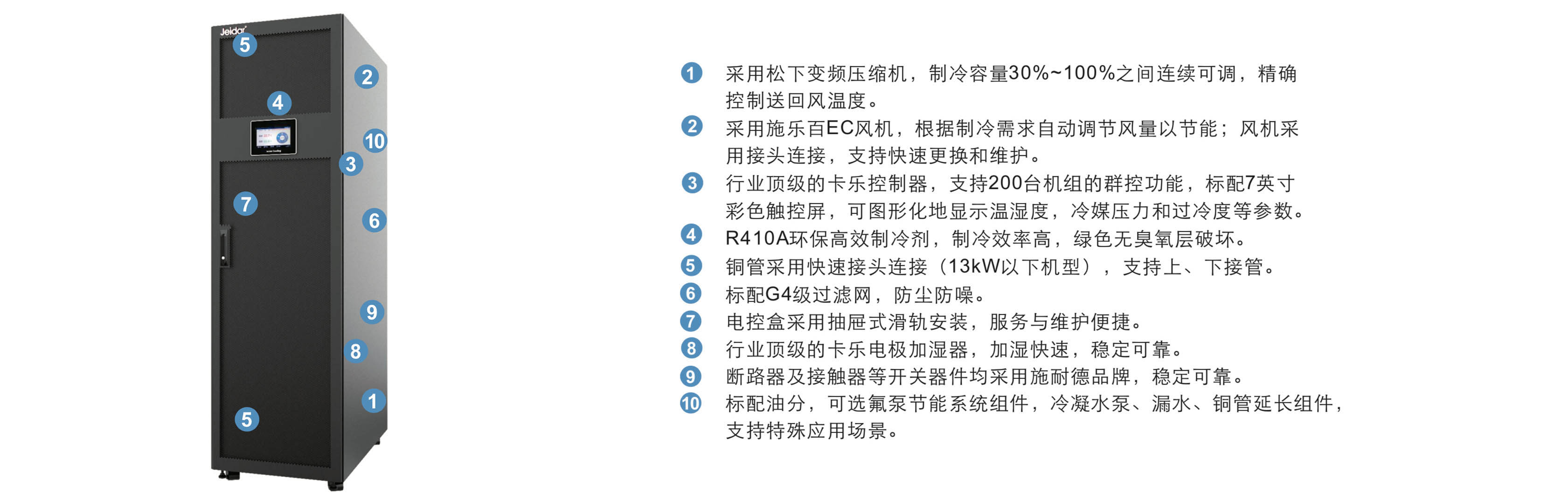 精密空(kōng)調,600/900 寬行(xíng)級安裝,恒溫恒濕 π型或單冷(lěng)型,含室外(wài)↕♠€機(jī)。變頻(pín)壓縮機(jī)制(zhì)冷®≠φ(lěng)量動态調節避免凝露,內(nèi)外☆•(wài) EC 風(fēng)機(jī$→)風(fēng)量自(zì)動調節,室外(wài)變頻(pín)風(f→ēng)機(jī)自(zì)動調節